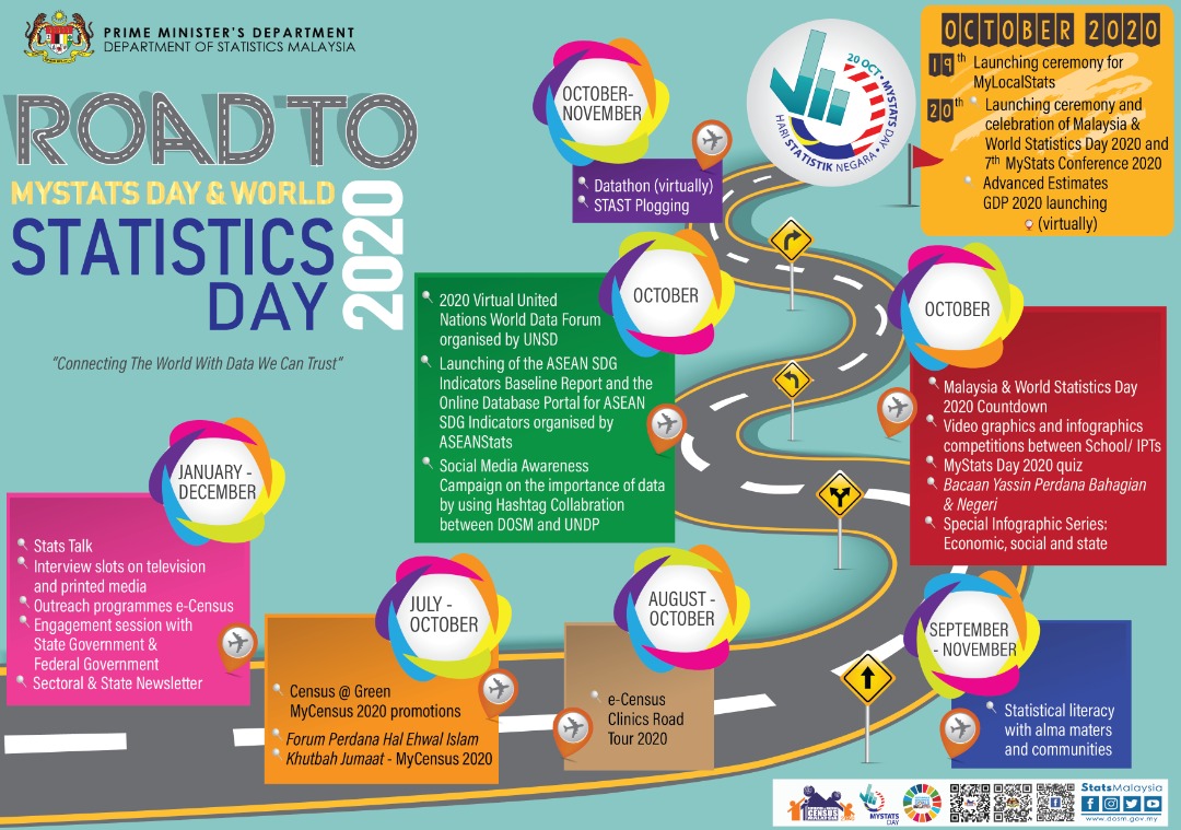 The celebration of National Statistics Day (MyStats Day) 2020 is very meaningful because it will be celebrated together with World Statistics Day (World Statistics Day) on 20 October 2020. To fuel the celebration, the 51st United Nations Statistics Commission (UNSC) has finalized a new logo and chose the slogan "Connecting The World With Data We Can Trust" as the celebration theme this time.