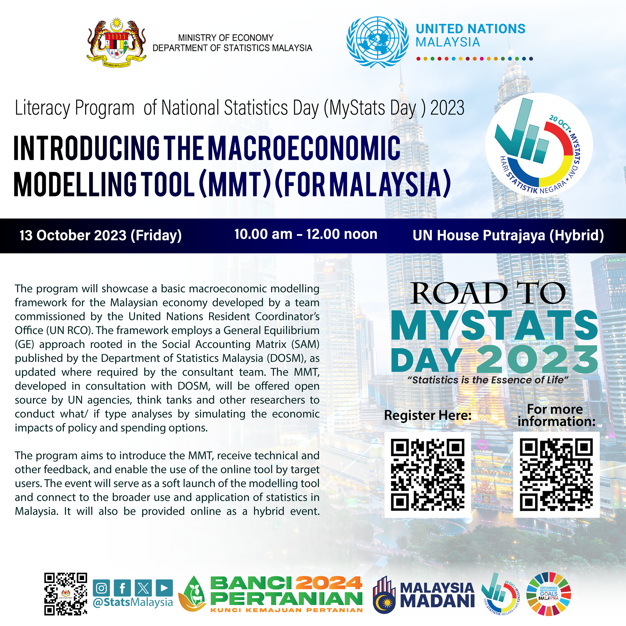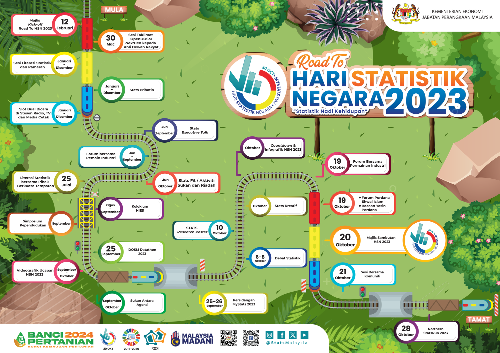 The 51st United Nations Statistical Commission (UNSC) has adopted the logo and slogan "Connecting the world with data we can trust" as the theme for the five-year period from 2020 until 2025. The celebration of HSN will have a significant impact on the initiative of the DOSM to ensure that statistical culture can be beneficial in achieving the aspirations of Malaysia MADANI.