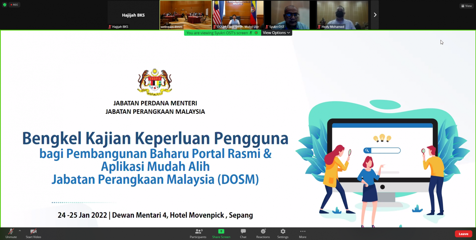 Workshop on User Requirements Specification (URS) for New Development of DOSM Portal & Mobile Applications was held at the Mövenpick Hotel and Convention Center, Sepang on 24 & 25 January 2022 (Monday & Tuesday).