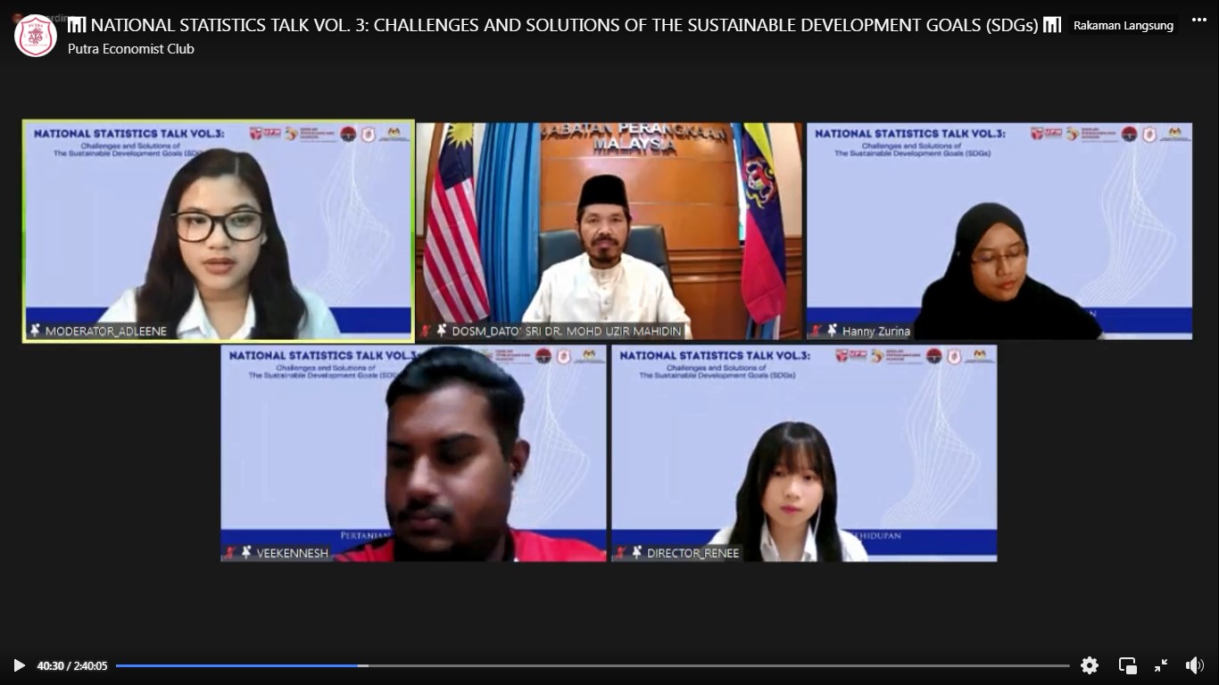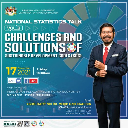DOSM has been invited as a panel in National Statistics Talk Vol. 3 with the topic "Challenges and Solutions of Sustainable Development Goals (SDG)". This session organised by Persatuan Pelajar Kelab Putra Economist, Universiti Putra Malaysia (UPM).