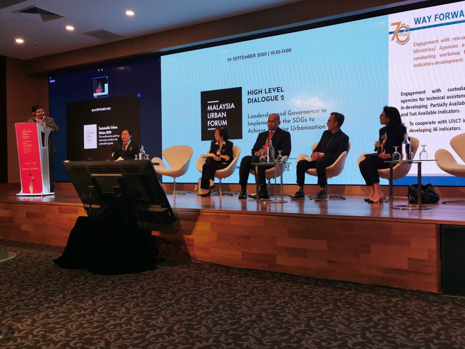 Malaysia Urbanice Forum 2020: Special session 3 on the Thematic: Inclusion Urbanisation with title Urban Poverty and Cities for All as a moderator; and High-Level Dialogue 2 on the Leadership and Governance in Implementing the SDGs to Achieve Inclusive Urbanisation as one of the panellist