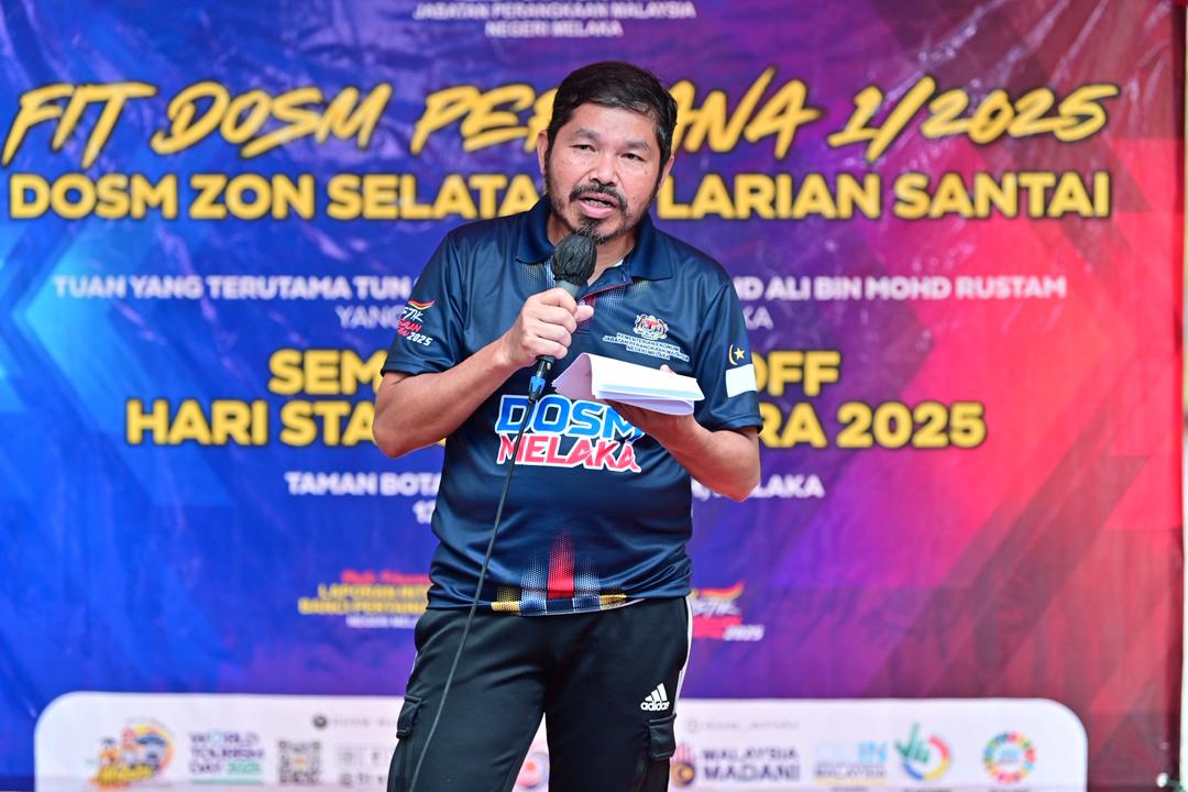 Program FitDOSM Perdana Zon Selatan Sempena Kick-Off Hari Statistik Negara 2025 bersama T.Y.T Tun Seri Setia (Dr) Haji Mohd Ali bin Mohd Rustam, Yang di-Pertua Negeri Melaka.