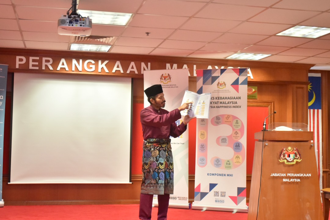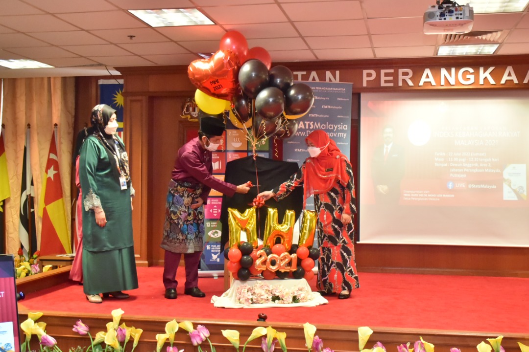 Majlis Pelancaran Laporan Indeks Kebahagian Rakyat Malaysia, 2021 yang dirasmikan oleh YBhg. Dato' Sri Dr. Mohd Uzir Mahidin, Ketua Perangkawan Malaysia.