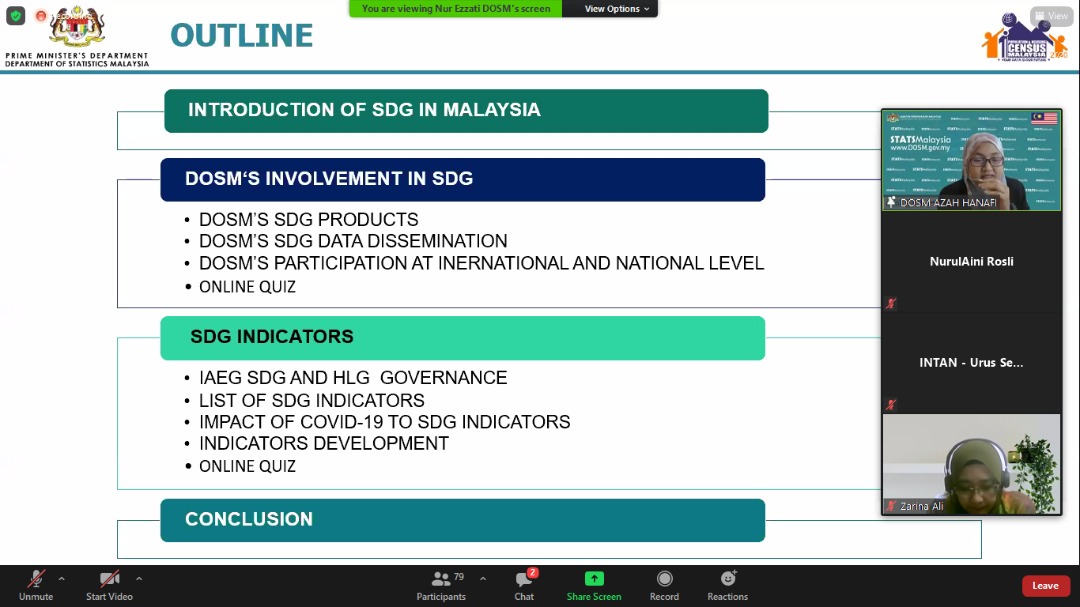Knowledge sharing from DOSM with the topic of DOSM Involvement and SDG indicators.