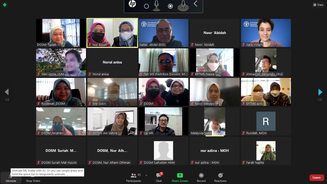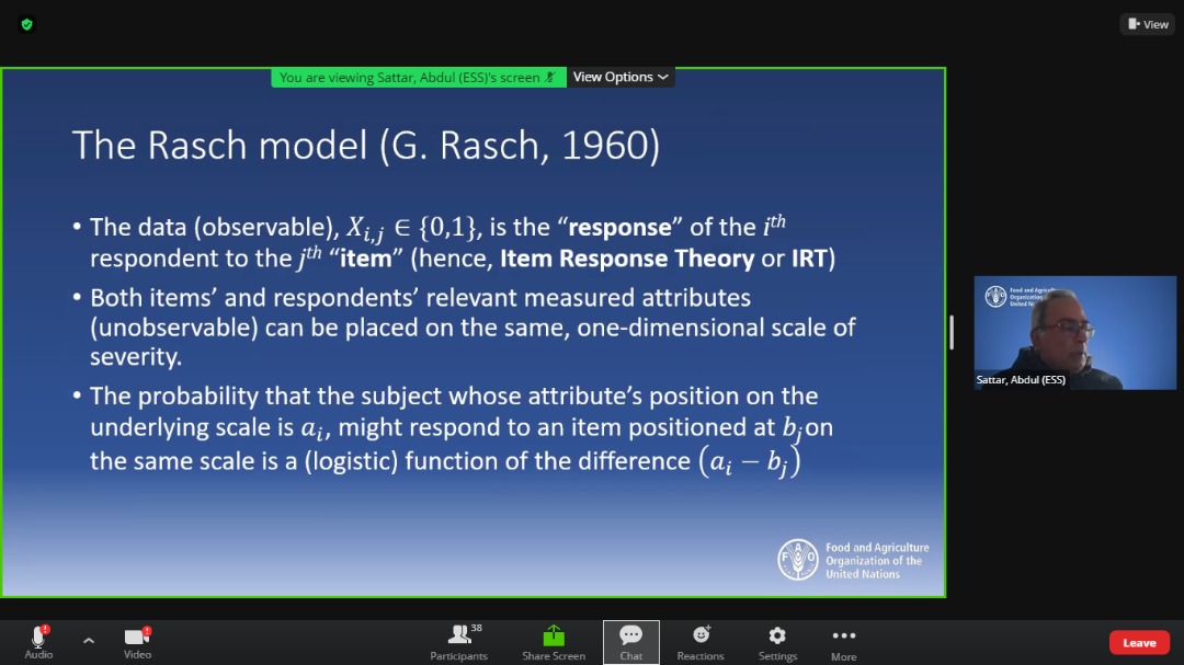 VIRTUAL TRAINING SESSIONS ON THE METHODOLOGY FOR SDG2.1.2 BY FOOD AND AGRICULTURE ORGANIZATION (FAO)
