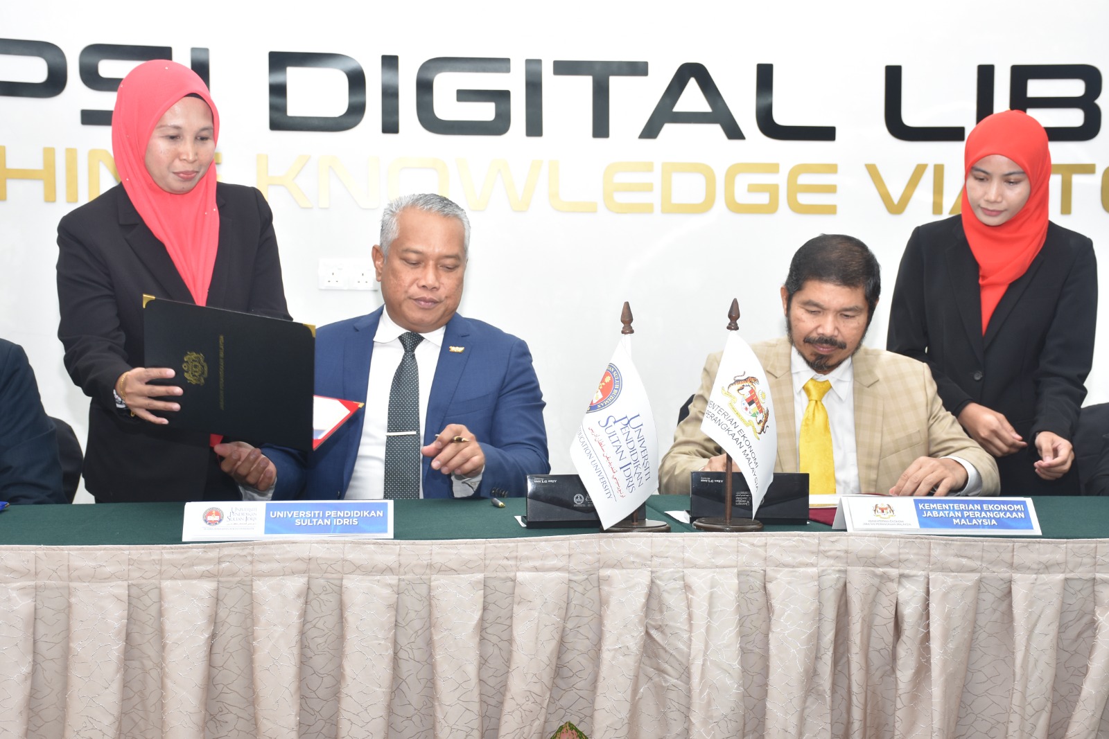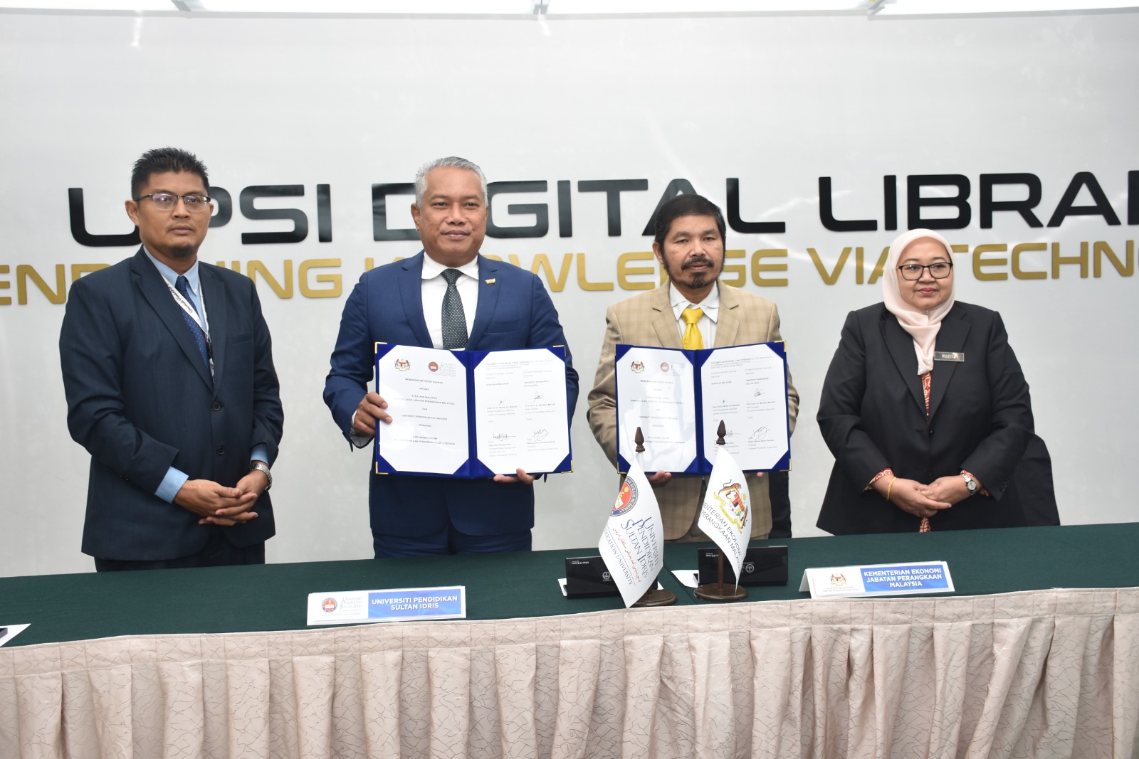 Dikongsikan gambar sekitar Majlis Menandatangani Memorandum Persefahaman (MoU) antara Jabatan Perangkaan Malaysia (DOSM) bersama Universiti Pendidikan Sultan Idris (UPSI) yang ditandatangani oleh YBhg. Dato’ Sri Dr. Mohd Uzir Mahidin, Ketua Perangkawan Malaysia dan YBhg. Prof. Dato’ Dr. Md Amin Md Taff, Naib Canselor, Universiti Pendidikan Sultan Idris pada 19 Januari 2024 di UPSI Digital Library, Kampus Sultan Azlan Shah, UPSI, Perak.