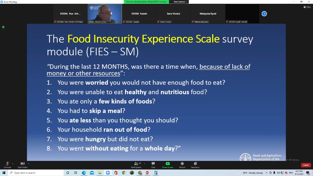 This session aims to learn on the methodology for analyzing Food Insecurity Experience Scale (FIES) related questions. FAO has presented the concept and method of calculating the Food Insecurity scale Experience using the data as discussed.