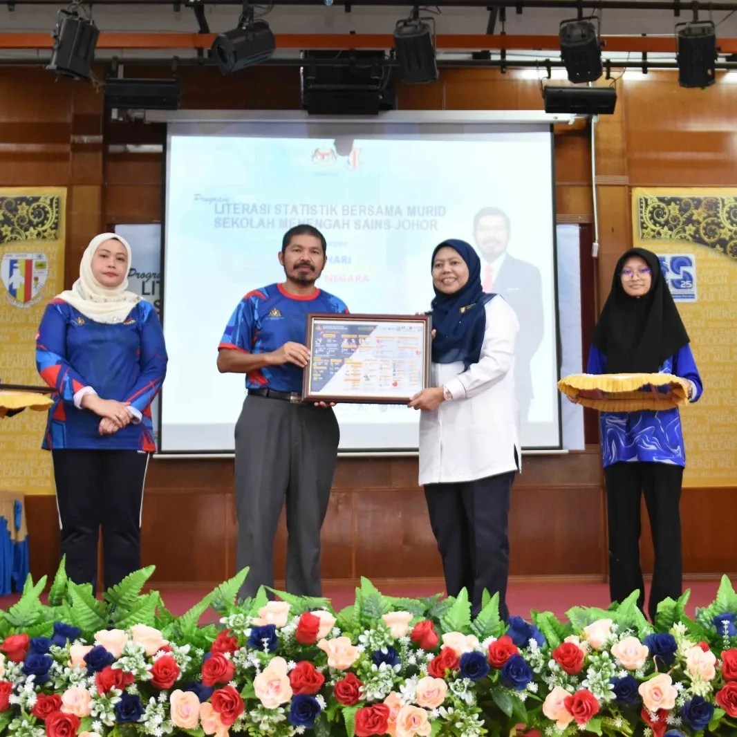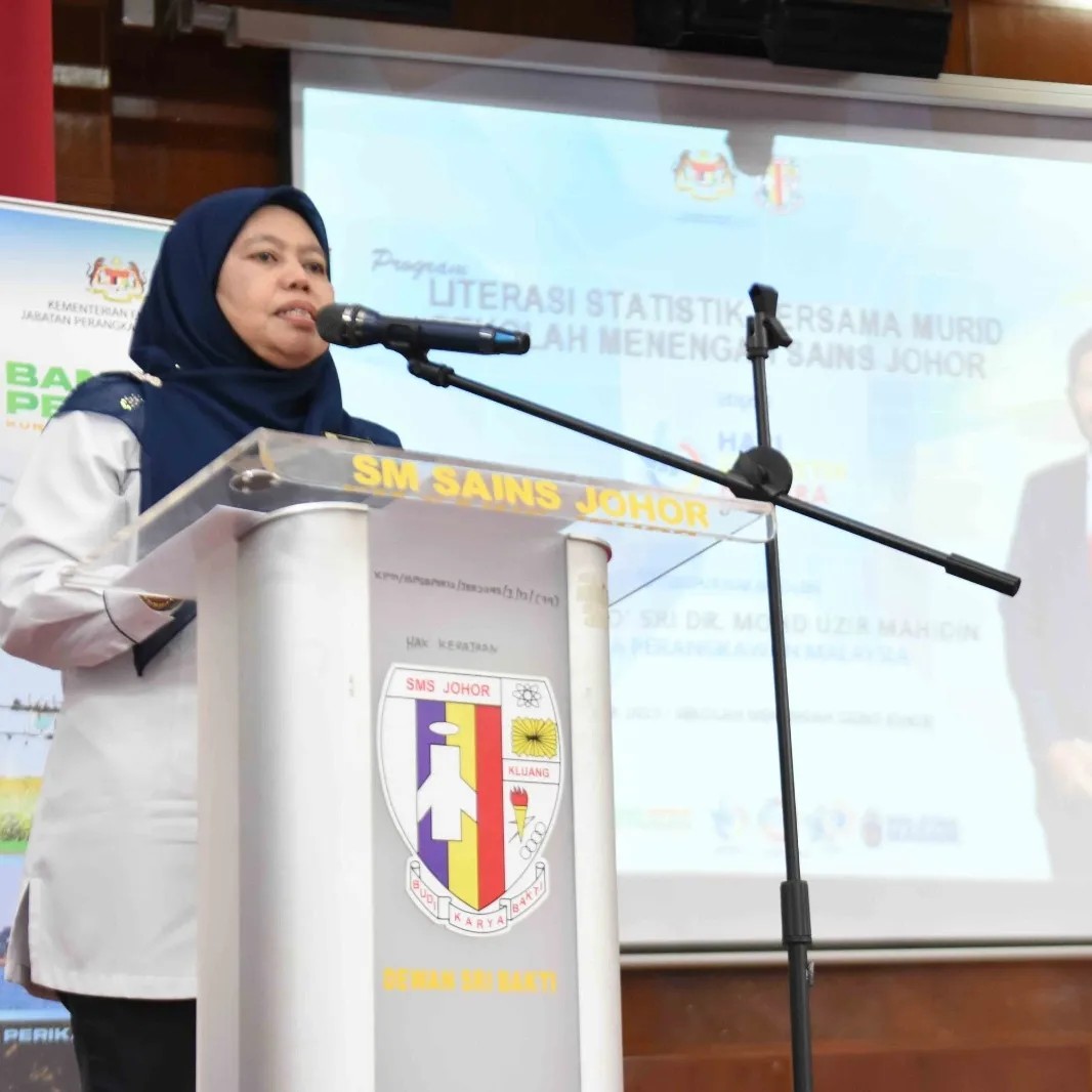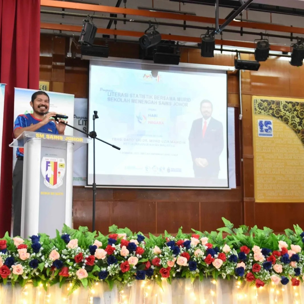 KETUA PERANGKAWAN MALAYSIA MENYAMPAIKAN STATS TALK DI SESI LITERASI STATISTIK SEKOLAH PERINGKAT PENDIDIKAN MENENGAH RENDAH DI DEWAN KARYAWAN,