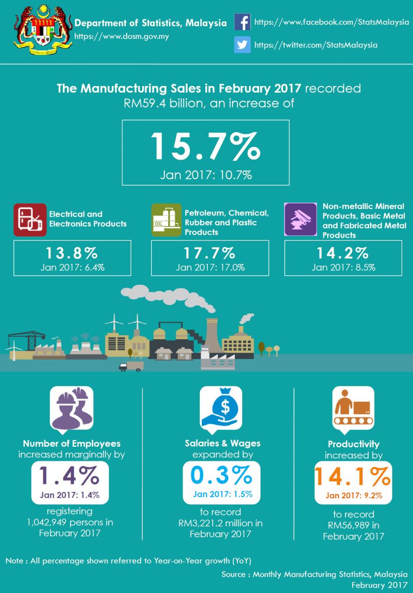 Manufacturing Sales registered RM59.4 billion in February 2017