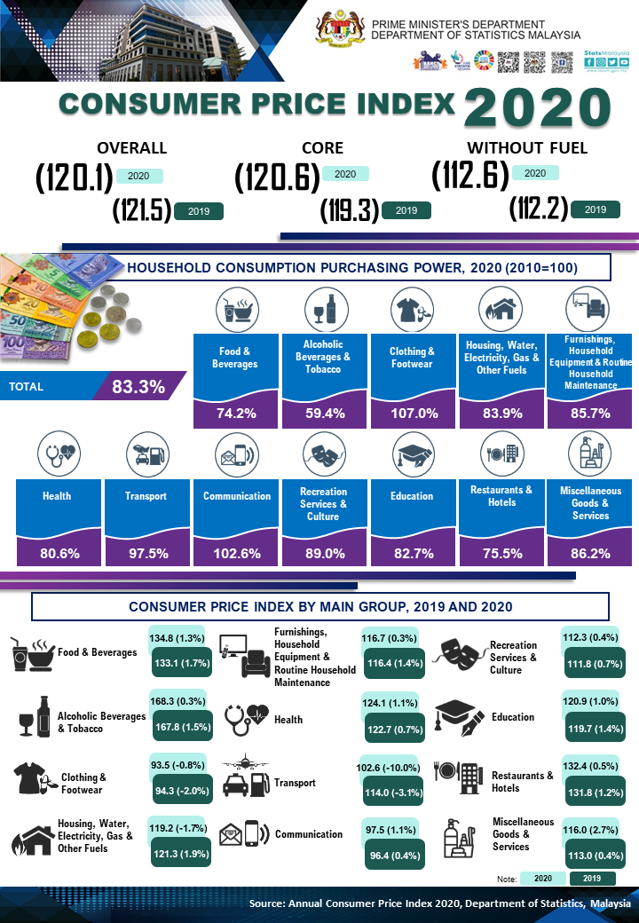 The full publication of the Analysis of Annual Consumer Price Index 2020 can be download from eStatistik portal.