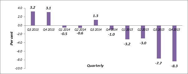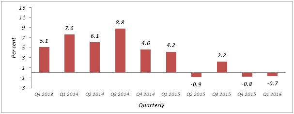 Business performance in the first quarter 2016 is expected to slow down, as shown by the confidence indicator of -0.7 per cent.