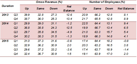 Table 3: Net Balance of Current Situation for Gross Revenue and Number of Employees, 2013-2015