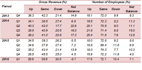 Table 1: Expected of Net Balance Gross Revenue and Number of Employees, 2013-2016