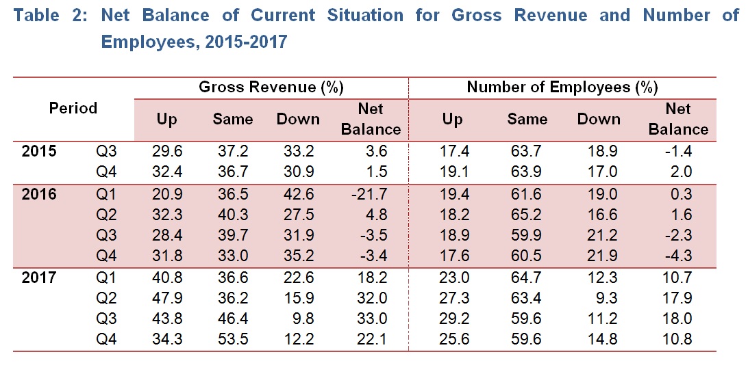 The gross revenue for fourth quarter of 2017 increased with a net balance of +22.1 per cent whereby 34.3 per cent establishments reported an increase while, 12.2 per cent of establishments reported a decline.