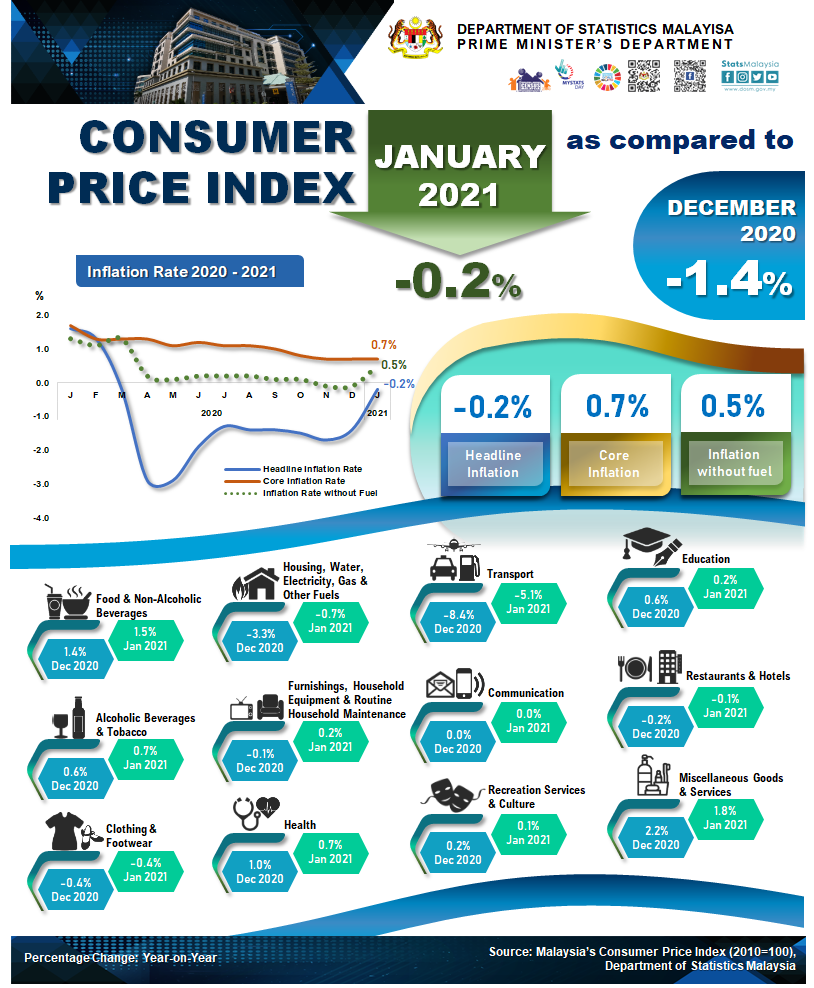 The full publication of the Consumer Price Index Malaysia, January 2021 can be downloaded from eStatistik portal.
