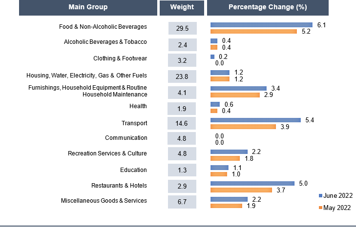 Food Inflation continues to contribute in the rise of Malaysia’s inflation, June 2022