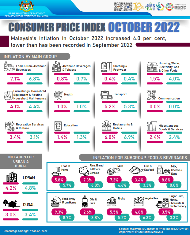 The full publication of the Consumer Price Index Malaysia, October 2022 can be downloaded from eStatistik portal.