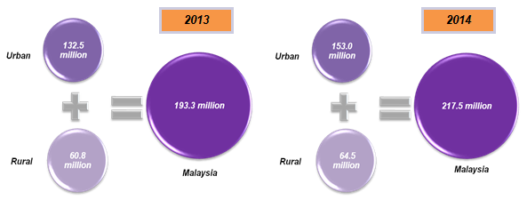 The number of domestic tourism trips increased by 12.5 per cent in 2014 to 217.5 million trips as compared to 193.3 million trips in 2013. Domestic tourism trips from the urban and rural areas also increased by 15.5 per cent and 6.1 per cent respectively in 2014.