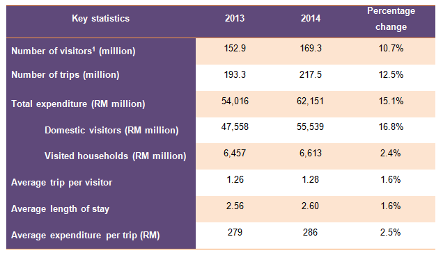 In 2014, domestic visitors spending amounted to RM55,539 million of the total expenditure RM62,151 million.
