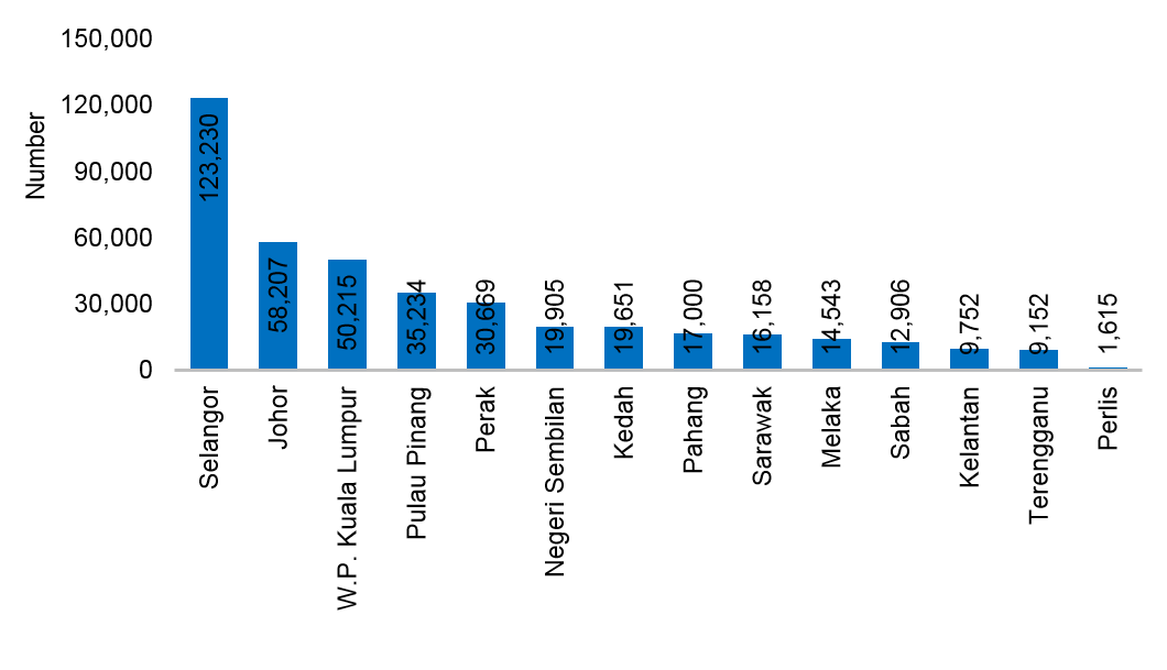 Selangor has recorded the highest number of road accidents in 2020 at 123,230 cases, a decrease of 26.7 percent compared to in 2019 (168,222 cases). This was followed by Johor (58,207 cases) and W.P. Kuala Lumpur (50,215 cases). The three states that recorded the lowest number of road accident cases were Perlis (1,615 cases), Terengganu (9,152 cases) and Kelantan (9,752 cases) .
