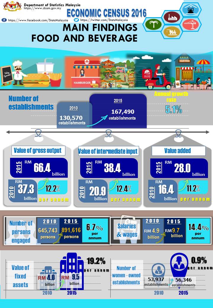 The census results showed that there were 167,490 establishments operated in food and beverage services compared to 130,570 establishments in 2010 with annual growth rate of 5.1 per cent.
