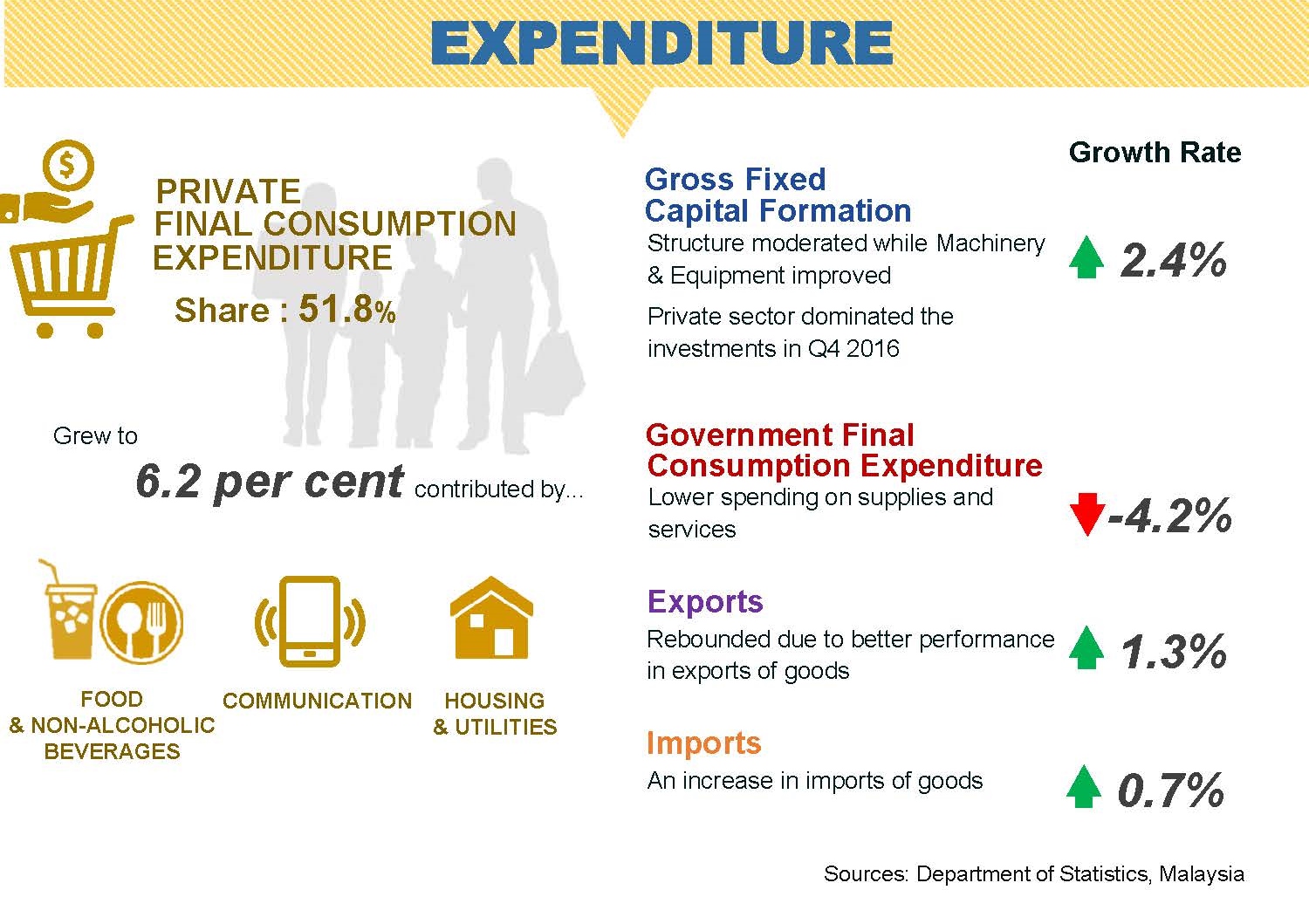 Malaysia’s economy continued to expand with a growth of 4.5 per cent in the fourth quarter of 2016. On a quarter-on-quarter seasonally adjusted, the GDP grew 1.4 per cent.