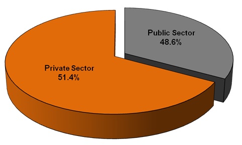Gross Fixed Capital Formation (GFCF) expanded to 4.3 per cent supported by the brisk momentum in Structure at 10.8 per cent. The expansion in GFCF was induced by Private sector (share: 51.4%) which registered a double-digit growth of 11.2 per cent while Public sector slipped to 2.1 per cent in this quarter.