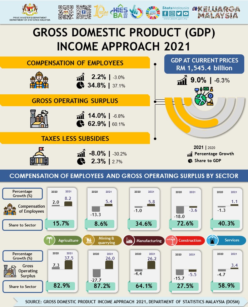 The full publication of Gross Domestic Product Income Approach 2021 can be downloaded through eStatistik portal.