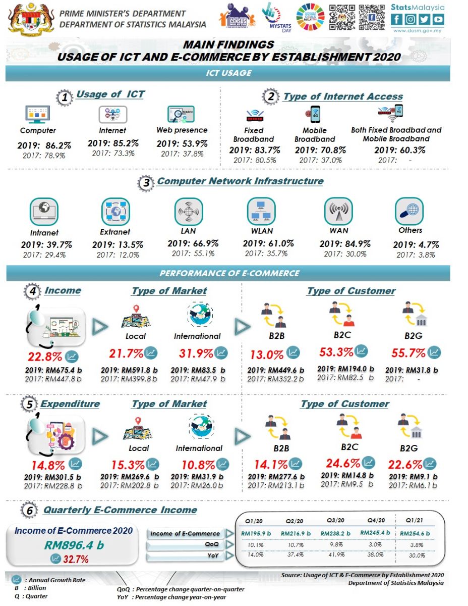 The full publication of Usage of ICT and E-Commerce by Establishment 2020 can be downloaded through eStatistik Portal.