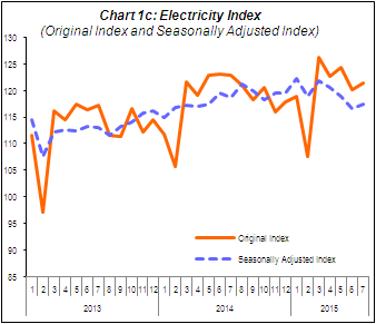 PERFORMANCE OF ELECTRICITY SECTOR The Electricity sector output fell 1.2% in July 2015 on yearly basis. In seasonally adjusted terms, Electricity sector output grew marginally by 0.7% in July 2015 as compared to the previous month. |
