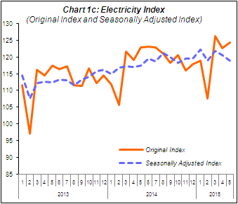 PERFORMANCE OF ELECTRICITY SECTOR The Electricity sector output expanded by 1.2% in May 2015 on yearly basis. In seasonally adjusted terms, Electricity sector output contracted 1.3% in May 2015 as compared to the previous month. |