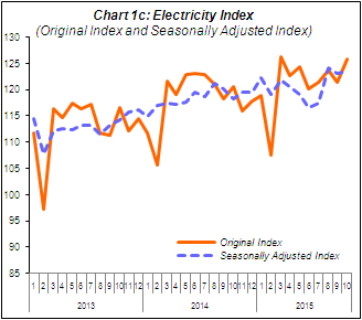 PERFORMANCE OF ELECTRICITY SECTOR The Electricity sector output grew 4.3% in October 2015 on yearly basis. On a seasonally adjusted terms, Electricity sector output increased by 0.4% as compared to the previous month. |