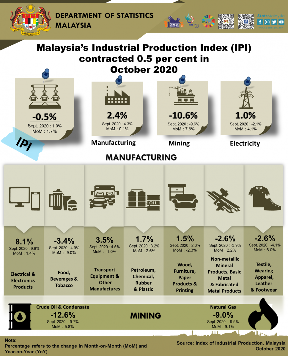 Malaysia’s Industrial Production Index (IPI) contracted 0.5 per cent in October 2020