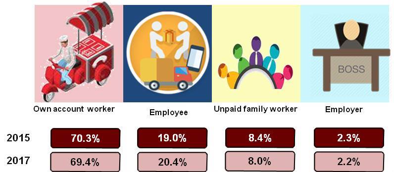 Employment in the informal sector by status in employment, Malaysia, 2015 and 2017