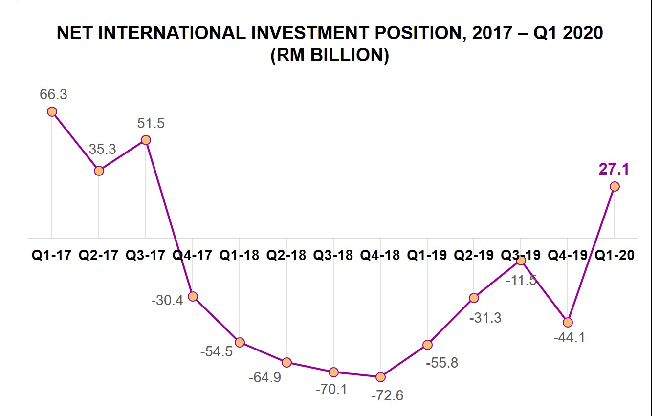 Malaysia's international investment position recorded net assets of RM27.1 billion