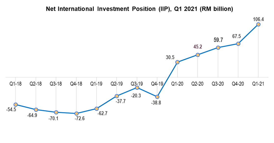 Malaysia's international investment position recorded a higher net assets of RM106.4 billion