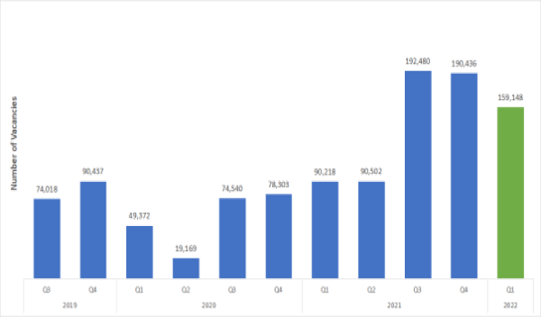 Chart 1: Job Vacancies Advertised Online, for the Third Quarter 2019 to First Quarter 2022