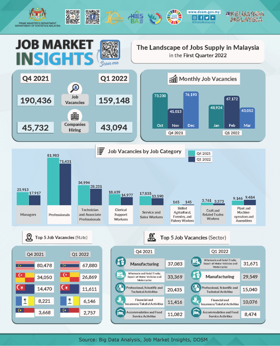 Job Vacancies Landscape in Malaysia, First Quarter of 2022