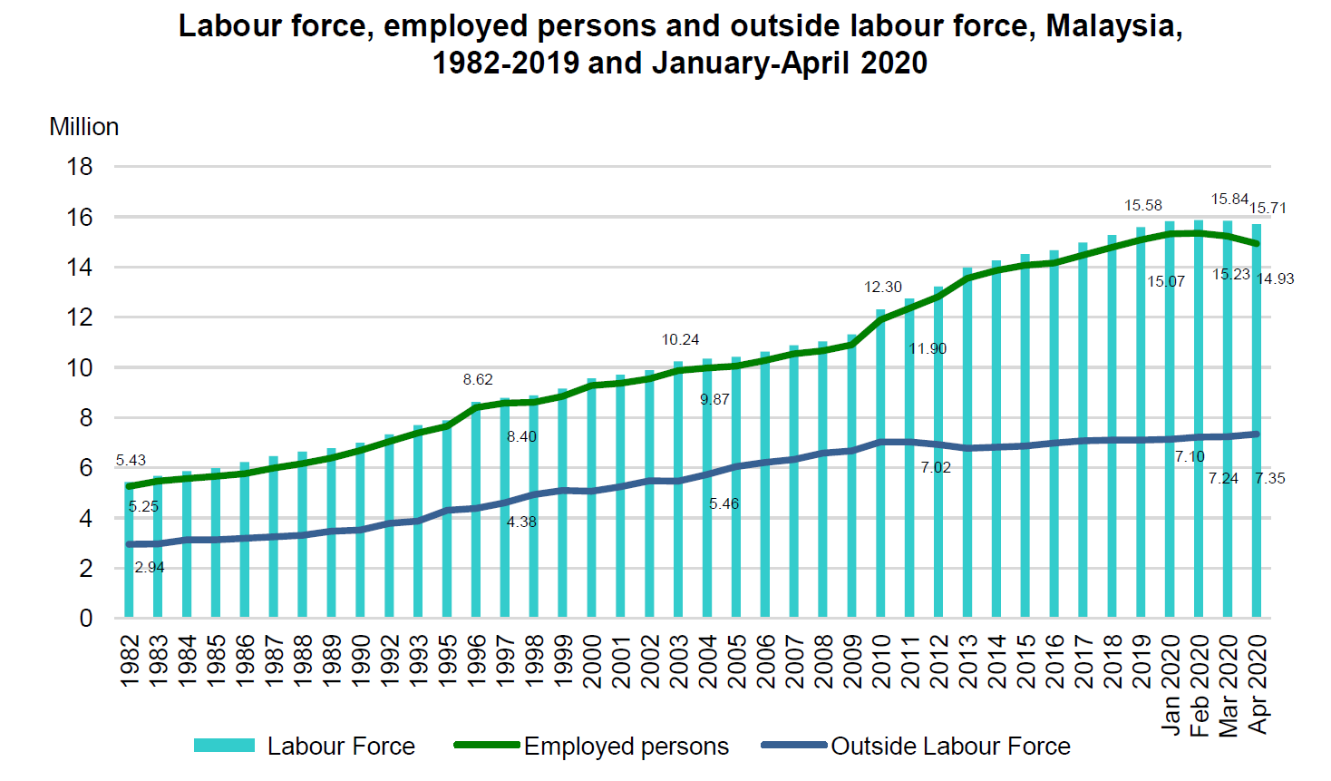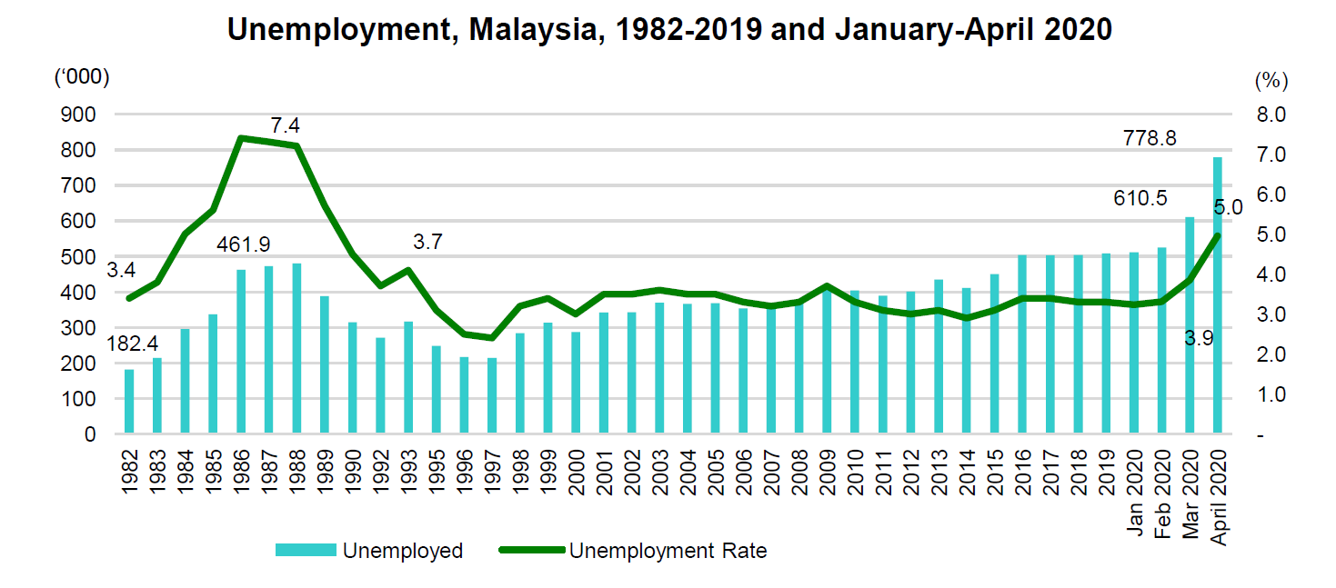 The unemployment rate spiked to 5.0 per cent as the unemployed persons went up 48.8 per cent as compared to a year ago to 778.8 thousand persons. The closure of operations for most of businesses during Movement Control Order (MCO) which has been extended to April 2020 has impacted loss of employment and jobseekers could hardly find jobs.