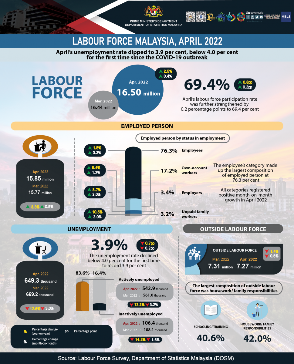 Key Statistics of Labour Force in Malaysia, April 2022
