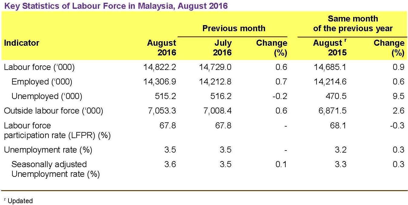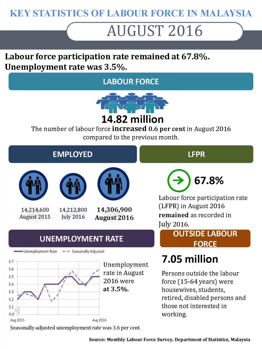Key Statistics of Labour Force in Malaysia, August 2016