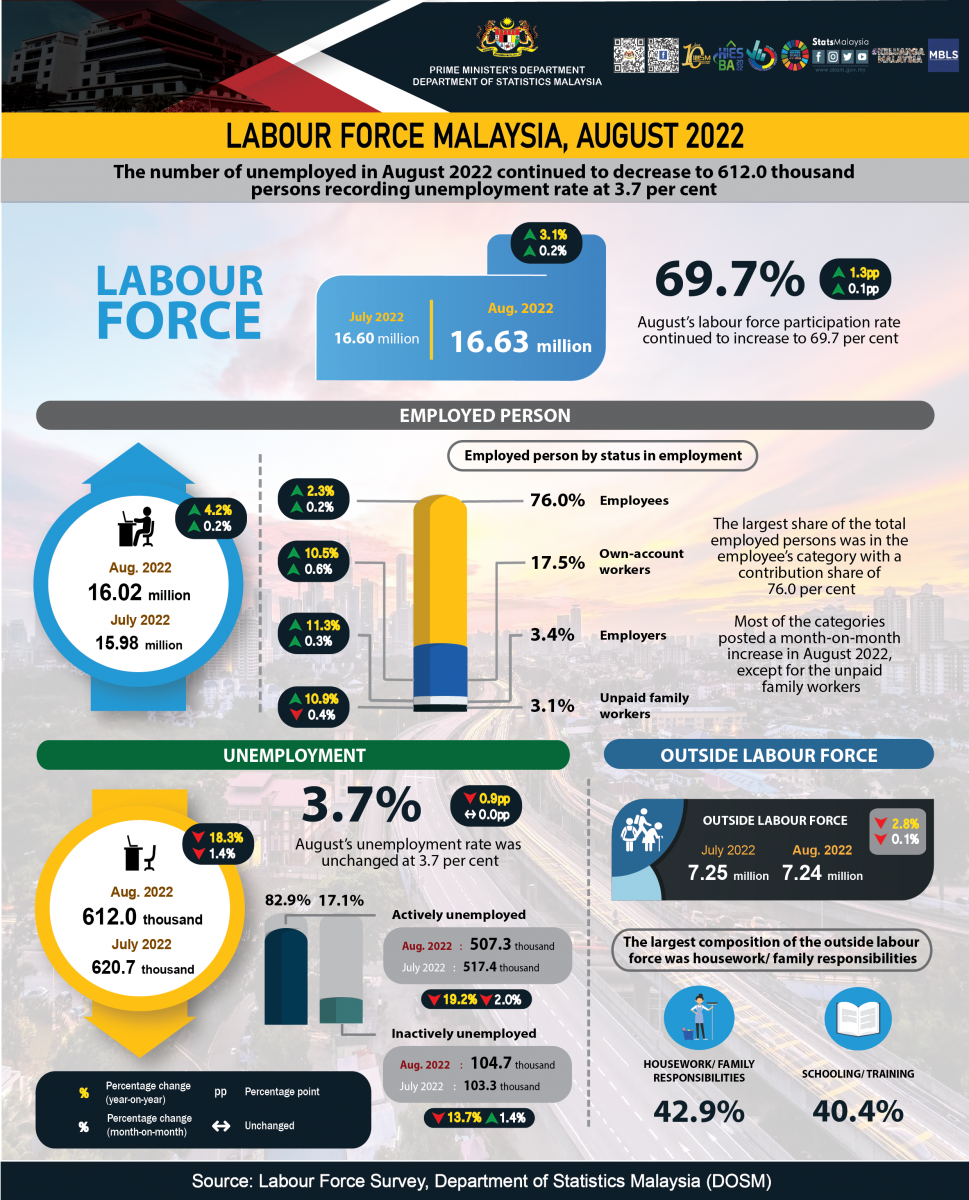 Key Statistics of Labour Force in Malaysia, August 2022
