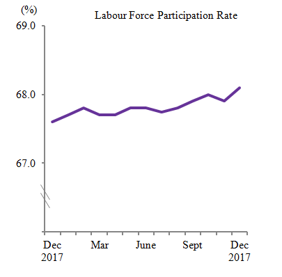 Year-on-year showed that labour force participation rate in December 2017 increased by 0.5 percentage points.