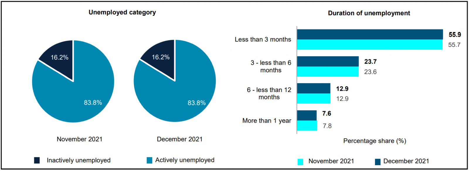 Chart 4: Unemployed category and duration of unemployment, November and December 2021