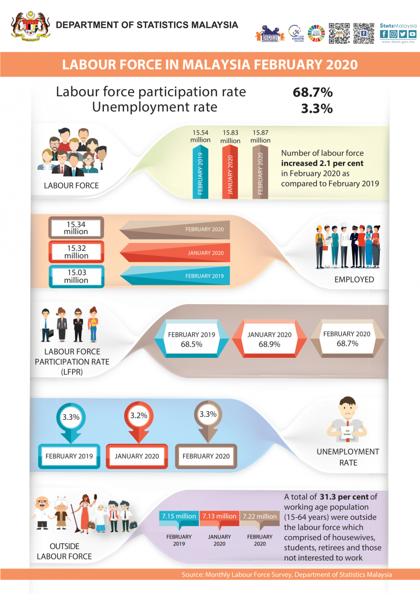 Key Statistics of Labour Force in Malaysia, February 2020