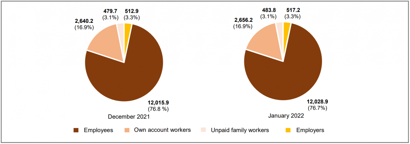 Chart 2: Employed person by status in employment, December 2021 and January 2022