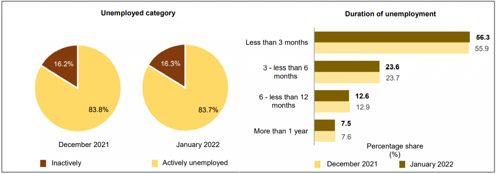 Chart 4: Unemployed category and duration of unemployment, December 2021 and January 2022