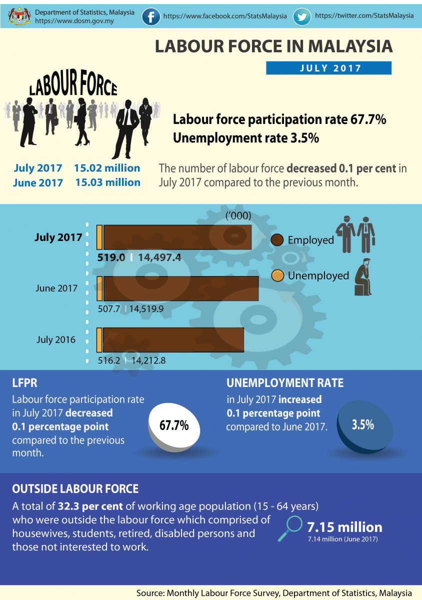 Key Statistics of Labour Force in Malaysia, July 2017