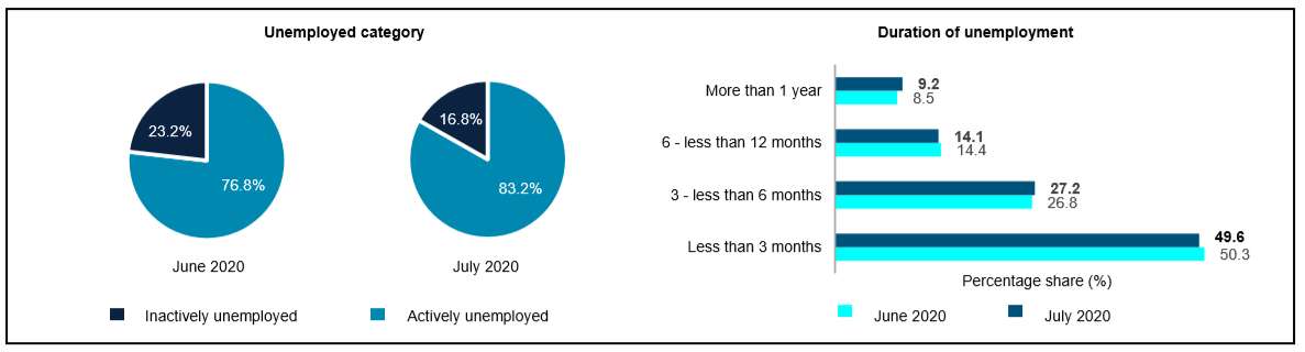 Chart 4: Unemployed category and duration of unemployment, June and July 2020