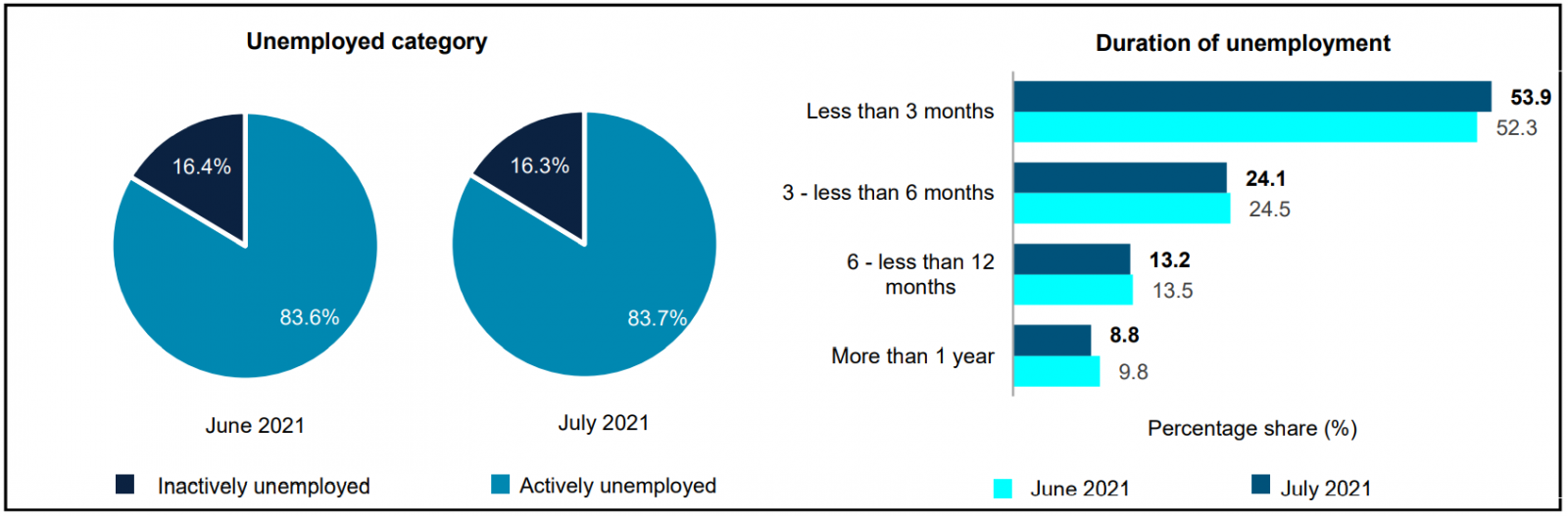 The unemployment rate in July 2021 remained unchanged at 4.8 per cent